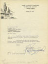 “Please accept my appreciation for the manner in which you have done the job of editing." Erle Stanley Gardner, 1889-1970. American lawyer and author. Typed Letter Signed, Erle Stanley Gardner, one page, 8½" x 11”, on personal stationery, Rancho Del Paisano, Temecula, California, January 20, 1958. Gardner, the author of the renowned Perry Mason series, returns the proof of an article entitled “The Real Underdog" (not present) to the managing editor of The Atlantic Monthly. He writes, in part: “Thank you for your letter . . . , which was waiting for me when I returned to my headquarters yesterday. / The proof is all right and I am returning it herewith. Please accept my appreciation for the manner in which you have done the job of editing." Gardner refers to what he termed the "underdog" of the prison system, the parole board, to which he dedicated one of his Perry Mason titles, “The Case of the Cautious Coquette." The Atlantic Monthly published this article in March 1958 under the title “Parole and the Prisons: An Opportunity Wasted." Gardner reportedly had more than 135 million copies of his books in print in the United States at the time of his death. His principal character, Perry Mason, appeared in more than 80 novels and short stories and was featured in a long-running radio series, on film, and in television's longest-running lawyer drama, the 1957-1966 series starring Raymond Burr. Gardner has signed this letter with a beautiful blue fountain pen signature. The letter has normal mailing folds, one of which touches the signature. There are staple holes at the upper left and a pencil notation in the bottom blank margin. Overall the letter is in fine condition. Unframed.