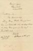 2605704 Rutherford B. Hayes Scroll down to see images of the item below the description Poignant letter by Hayes remembering his wife’s death precisely three years earlier Rutherford Birchard Hayes, 1822–1893. 19th President of the United States, 1881–1885. Autograph letter signed, Rutherford B. Hayes, one page, 5½” x 8½”, on plain stationery, Spiegel Grove, Fremont, Ohio, June 25, 1892. With original mailing envelope addressed in Hayes’s hand. Hayes sends a poignant response to genealogist Clair A. Newton, who evidently asked about his wife, former First Lady Lucy Webb Hayes, noting for Newton that she had died precisely three years before. He writes, in full: “My precious wife Lucy Ware Webb Hayes was born in Chillicothe Ohio 28 August 1831 and died three years ago this day! — June 25, 1889. / Sincerely . . . ” Lucy Hayes was nine years younger than President Hayes. Hayes’s mother had encouraged him to get acquainted with her when he was a 23-year-old student at Ohio Wesleyan University, where Lucy’s brothers were enrolled, but he thought that, at age 14, she was too young. Later he began to see her when, to boost his law practice, he moved to Cincinnati, where she was enrolled at Cincinnati Wesleyan Female College. Hayes wrote a friend in January 1850 that he “found her as soon as she returned from her holiday visit, and have enjoyed the light of her gleesome smile and merry talk times not a few nor far between.” They began to date seriously and became engaged in 1851. Hayes’s love was unbounded. Thus, he began a long Sunday morning love letter to “ Dearest Lucy” on June 22, 1851, this way: I know it is very wicked to spend this holy Sabbath morning writing sweet nonsense to my lady-love, instead of piously preparing to go to church with mother, as a dutiful son ought to do, but then I’m hardly responsible. This love is, indeed, an awful thing; as Byron said, “it interferes with all a man’s projects for good and glory.” Besides, I am only fulfilling my scriptural destiny in “forsaking father and mother”—and all that—and—and—I can’t quote any farther. But the pith of it is—leaving your mother to go alone to church, and stealing off up into a quiet chamber to spoil good paper with wretched scribbling to puzzle the eye of the dearest girl of all the world. Well, you’ll forgive the sin I hope. I know you will if you have thought a tithe as much about me—but you haven’t—as I have about you, the five or six days past,—and with a pardon beaming from your—I was a-going to say deep, and then sweet, but no one adjective can describe it—eye, I shall feel a heathenish indifference as to any other forgiveness. For “at this present,” that eye has become to me, and I trust will ever continue, “like a star in the mariner’s heaven”—an eye which is to give color, shape, and character to all my future hopes, fancies, and “reveries.” . . . . To think that I am beginning to realize that revery [before the glowing anthracite]! To think that that lovely vision is an actual, living, breathing being, and is loved by me, and loves in return, and will one day be my bride—my abiding, forgiving, trustful, loving wife—to make my happy home blessed indeed with her cheerful smile and silver voice and warm true heart! I Diary and Letters of Rutherford Birchard Hayes, Nineteenth President of the United States 367 (Charles Richard Williams ed. 1922). Hayes and Lucy were married on December 30, 1852, in a simple ceremony at her mother’s home in Cincinnati. Lucy died at the Hayes estate, Spiegel Grove, in Fremont, Ohio, following a stroke that she suffered at age 57. Her death was hard on the former President. He wrote that upon her death, “the soul had left” Spiegel Grove. When Hayes suffered a heart attack at home some 3½ later on January 17, 1893, his last words before his own death were, “I know that I’m going where Lucy is.” Clair Alonzo Hemenway Newton (1872–1956), to whom Hayes wrote this letter, was a genealogist and author. He compiled family histories, concentrating on the Hemenway and Newton families and the records where he lived in Naperville and DuPage County, Illinois. President Hayes has written and signed this letter in black fountain pen. There is quite a bit of transfer of the wet ink where the parts above and below the bottom mailing fold transferred to each other when Hayes folded the letter. Significantly, the ink transfers do not affect Hayes’s signature itself. The transfers include the ink from Hayes’s bold signature, which transferred lightly to a blank area at the end of the text of the letter, thus in a sense providing a second Hayes signature. Most of the transferred ink affects the blank area at the bottom of the letter, where the text touched it, although transfers from below the bottom fold affect a bit of the text above the fold, and the ink from the place and date from the top of the letter transferred to the bottom of the back of the letter. The laid stationery is clean and bright except for a bit of soiling on the back of the letter around the folds. It appears that the stationery originally had an integral leaf that has been cleanly removed. The original envelope, which Hayes addressed, was opened at the right end, and part of the preprinted 2¢ postage stamp is missing. The postage was cancelled in Fremont, Ohio, and the letter has a second postmark from Naperville, Illinois, on the back. Pencil notations on the front of the envelope in an unknown hand identify the piece as coming from Hayes. The envelope has typical soiling and a vertical stain in the middle of the front side that affects four letters in the name and address. Overall, the letter is in fine condition, and the envelope is very good. In addition to its poignancy, this letter is quite desirable because Hayes has signed it with his full signature, as opposed to the shortened “R. B. Hayes” that he often signe